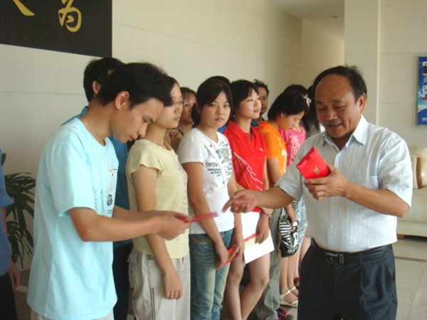 董事長(zhǎng)許仲秋先生給員工子弟發(fā)升學(xué)獎(jiǎng)勵(lì)紅包