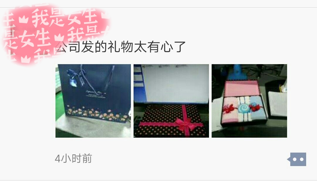 3月8日上午,公司為每位女職工贈(zèng)送了女神節(jié)禮品,公司祝福廣大的女性節(jié)日快樂(lè)!