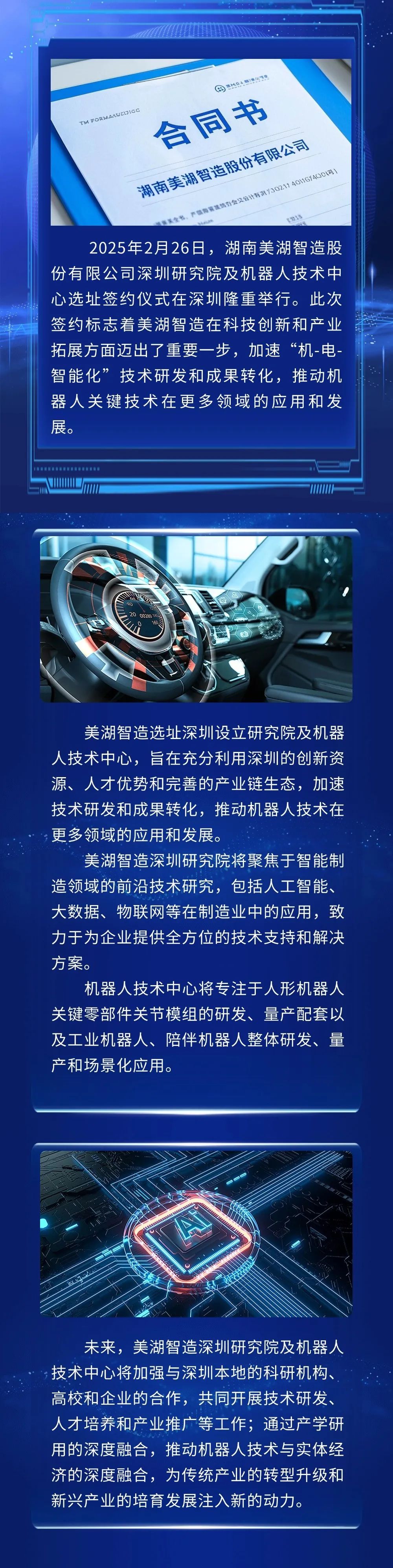 美湖智造深圳研究院及機器人技術中心正式選址簽約 助力機器人產業升級